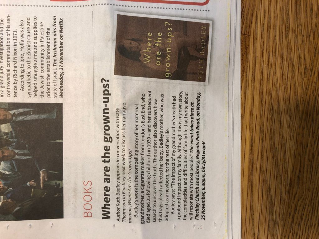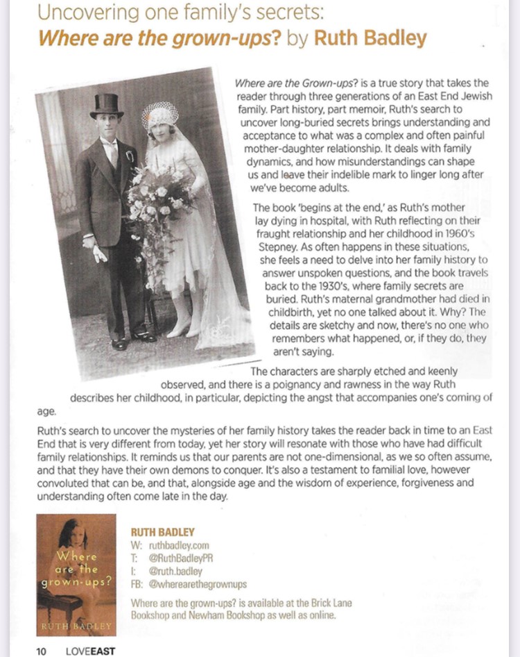 Where are the grown-ups? by Ruth Badley explores the impact of this tragedy on three generations of her family. A presentation and reading by the author takes place at the Half Moon Theatre, Limehouse on 17 July 2019.