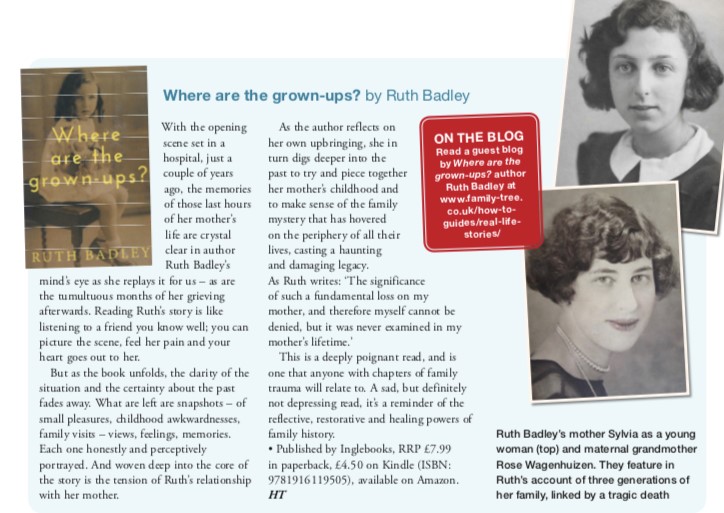 ‘Reading Ruth’s story is like listening to a friend you know well. A deeply poignant read.’ Family Tree Magazine
